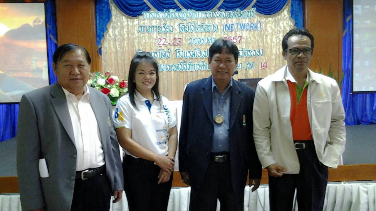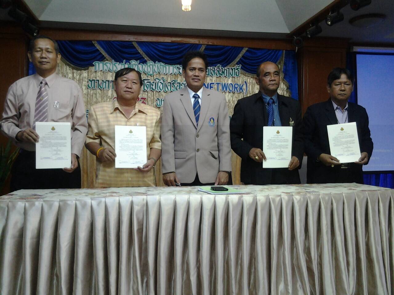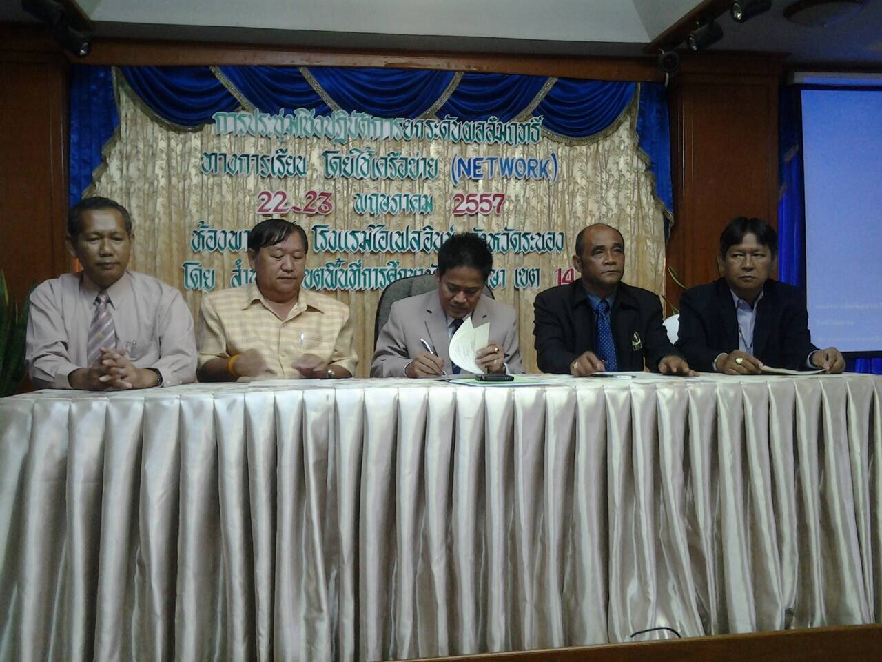 นายธัชชเวชว์ จันทร์สุขศรี ผอ.สพม.14 เป็นประธานเปิดการประชุมเชิงปฏิบัติการยกระดับผลสัมฤทฺธิ์ทางการเรียน โดยใช้เครือข่าย และบรรยายพิเศษ เรื่อง ยุทธศาสตร์การยกระดับคุณภาพการศึกษา สพม.14 เมื่อวันที่ 22 พฤษภาคม 2557 ณ โรงแรมไอเฟลอินน์ อำเภอเมือง จังหวัดระนอง โดยนางสาวสุวิภา ตั้งก่อสกุล รองผอ.สพม.14 กล่าวรายงานวัตถุประสงค์ของการจัดประชุม การประชุมเชิงปฏิบัติการยกระดับผลสัมฤทธิ์ทางการเรียนโดยใช้เครือข่าย จัดขึ้นระหว่างวันที่ 22 – 23 พฤษภาคม 2557 เพื่อมุ่งเพิ่มผลสัมฤทธิ์ทางการเรียนโดยใช้เครือข่ายส่งเสริมประสิทธิภาพการจัดการศึกษา สหวิทยาเขต ศูนย์พัฒนาการเรียนรู้กลุ่มสาระการเรียนรู้ และเพื่อพัฒนาผู้เรียนให้มีคุณภาพตามมาตรฐานการศึกษาขั้นพื้นฐาน ผู้เรียนได้รับการศึกษาเต็มตามศักยภาพ มีผู้เข้าประชุมประกอบด้วย ผู้อำนวยการโรงเรียน รองผู้อำนวยการโรงเรียนฝ่ายวิชาการ ครูที่รับผิดชอบฝ่ายวิชาการ จำนวน 90 คน จากโรงเรียนในสังกัด จังหวัดพังงา ภูเก็ตและระนอง โดยได้มีการลงนามบันทึกข้อตกลงความร่วมมือในการยกระดับผลสัมฤทธิ์ทางการเรียนของนักเรียนแต่ละกลุ่มสาระการเรียนรู้ และระดับชั้นเรียนในการประเมินผลสัมฤทธิ์ทางการเรียนจากการสอบ O-NET ในปีการศึกษา 2557 ให้มีค่าเฉลี่ยร้อยละสูงกว่าปีการศึกษา 2556 ระหว่างผู้อำนวยการโรงเรียน และผู้อำนวยการเขตพื้นที่การศึกษามัธยมศึกษาเขต 14 โดยนางสาวสุวิภา ตั้งก่อสกุล รองผอ.สพม.14 และนายถาวร เวชจันทร์ ผู้อำนวยการกลุ่มนิเทศ ติดตามและประเมินผลการจัดการศึกษา ลงนามเป็นพยานการทำบันทึกข้อตกลงในครั้งนี้ |