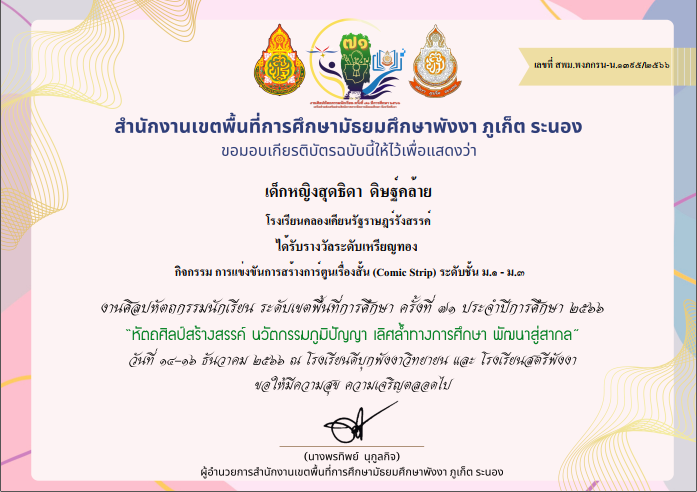 รางวัลระดับเหรียญทอง กิจกรรมการแข่งขันการสร้างการ์ตูนเรื่องสั้น ระดับชั้น ม.๑ - ม.๓